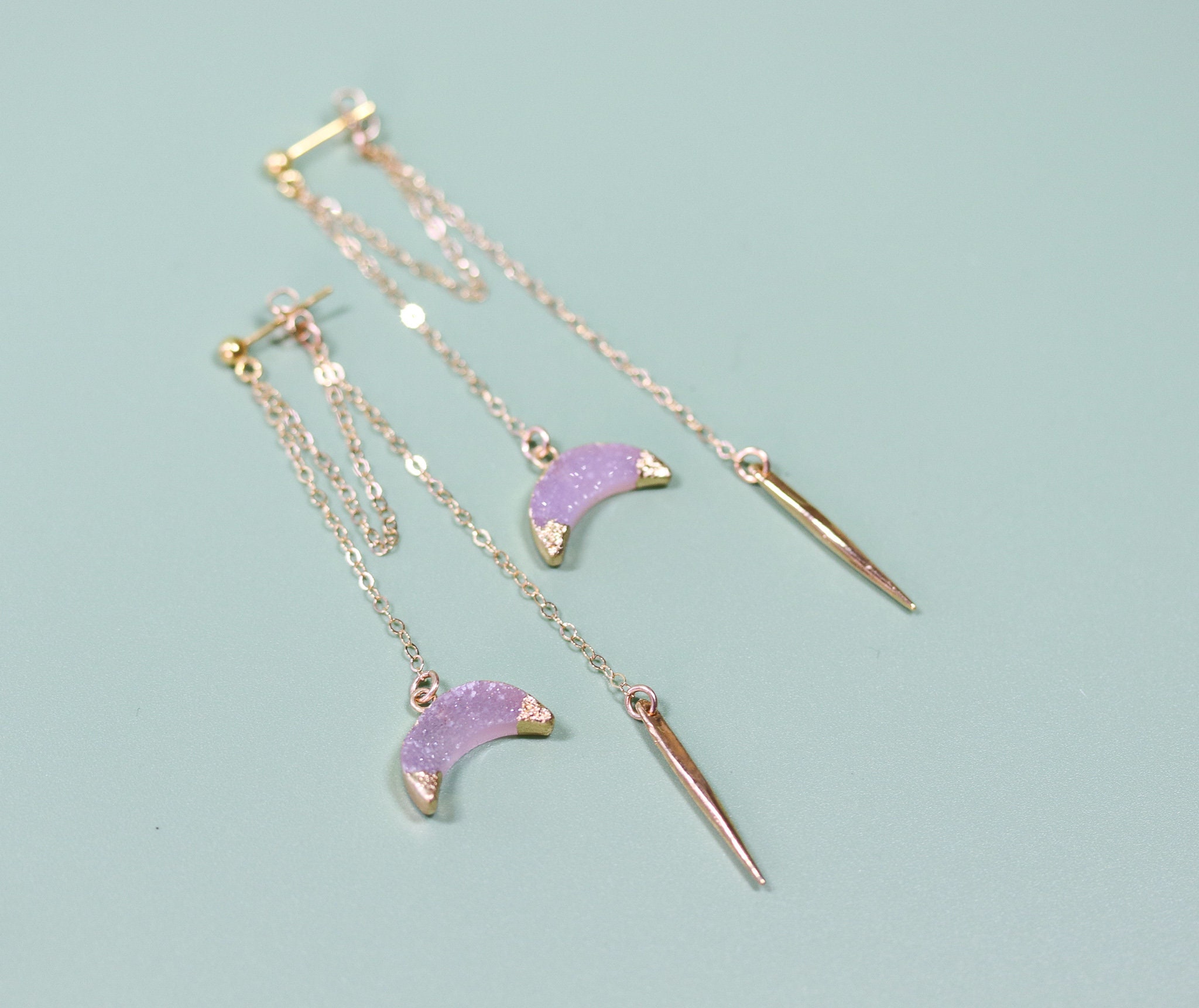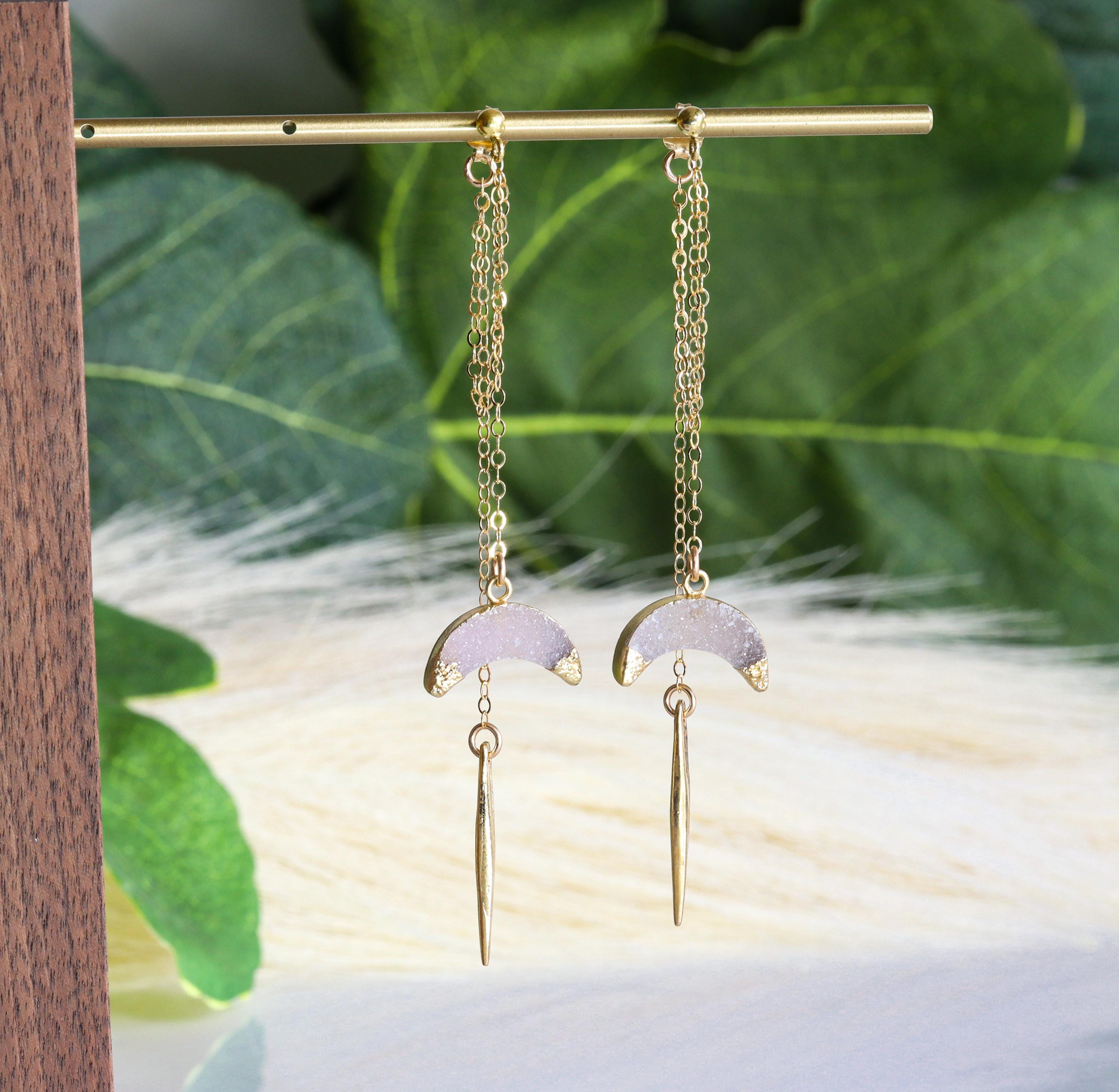 • This listing is for one set of Druzy Moon Ear Jackets with Gold Spike