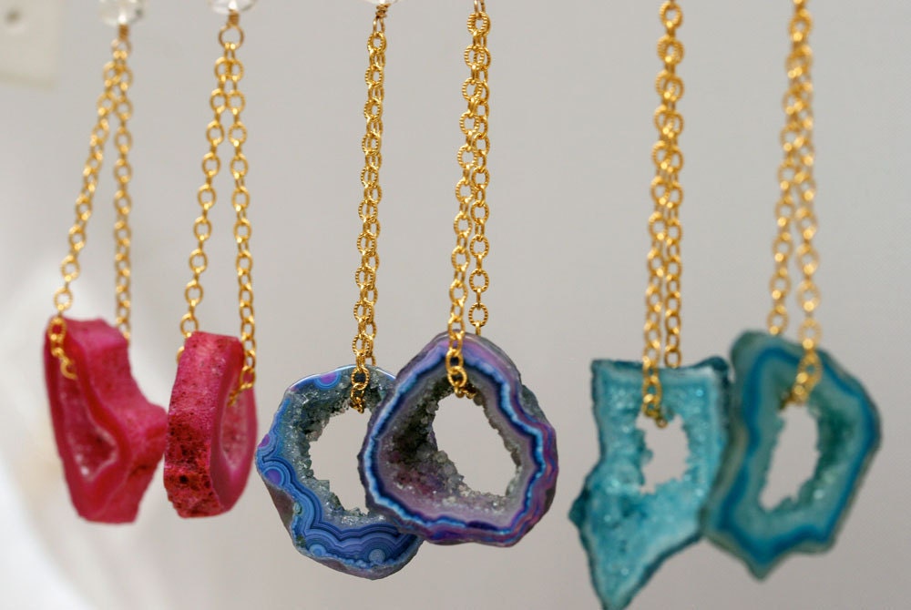 Build your own Druzy necklaces are custom items: You can choose your geode slice/ druzy on my blog. You will find this information in the listing. Custom Items are not returnable.