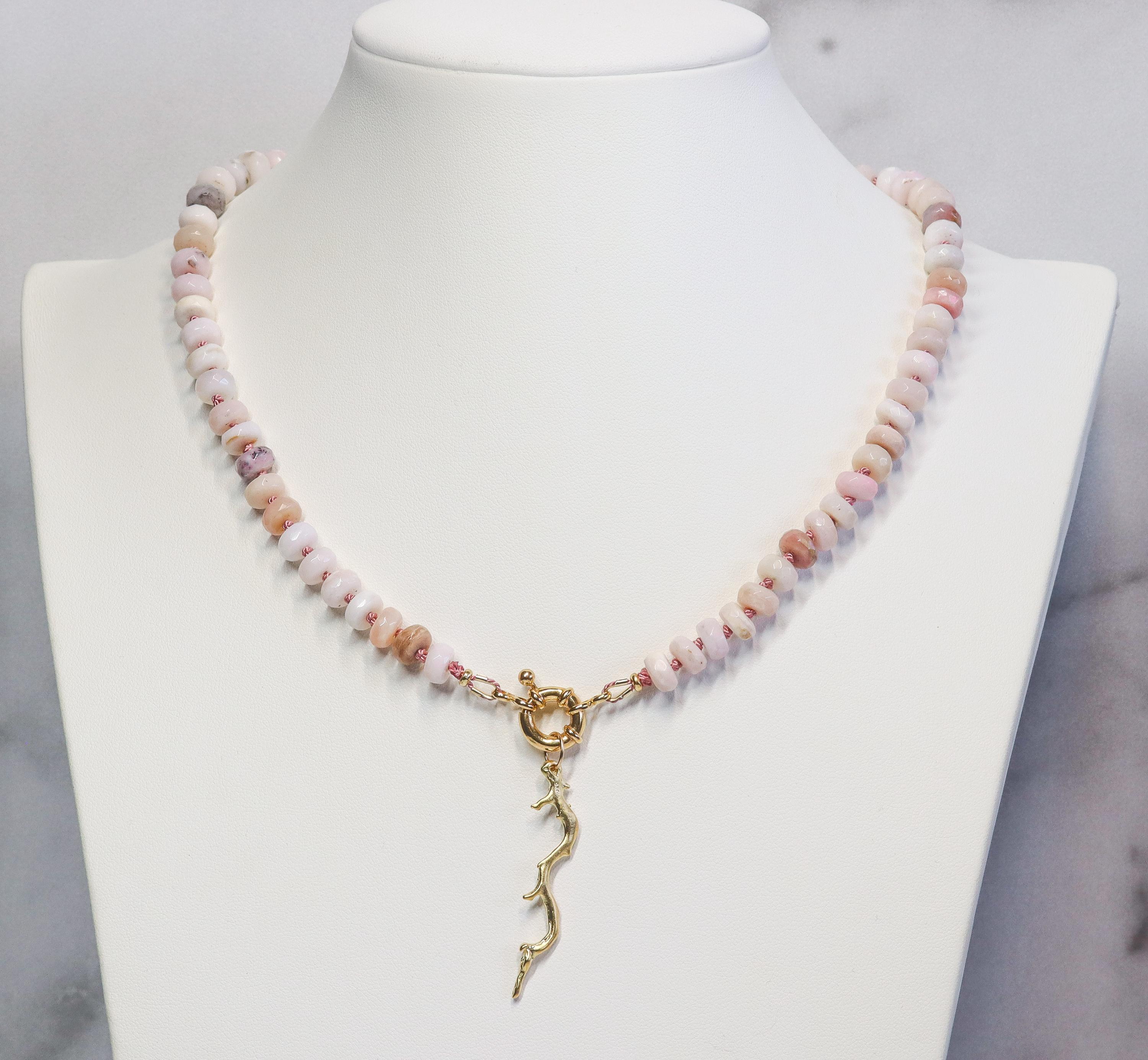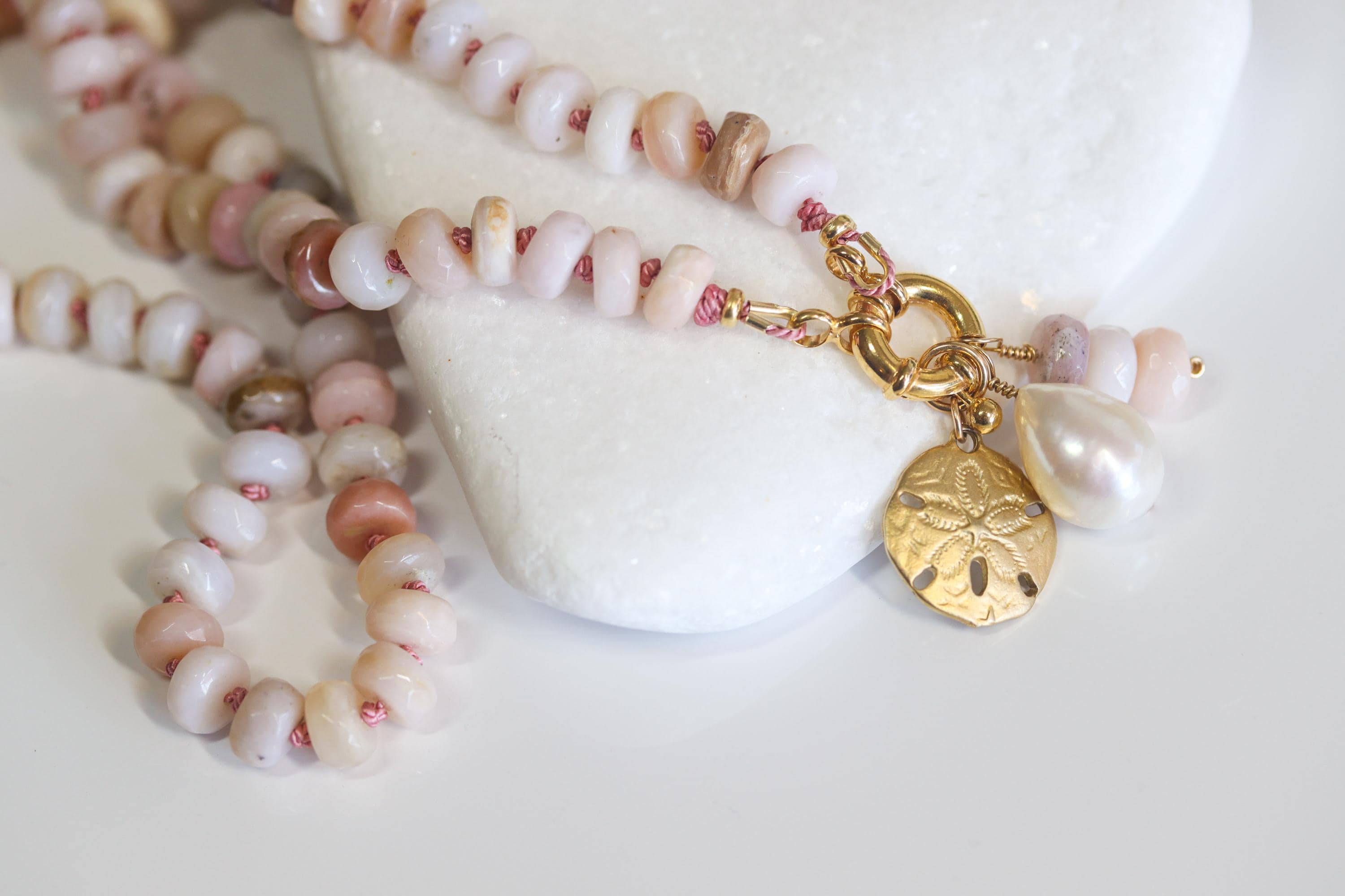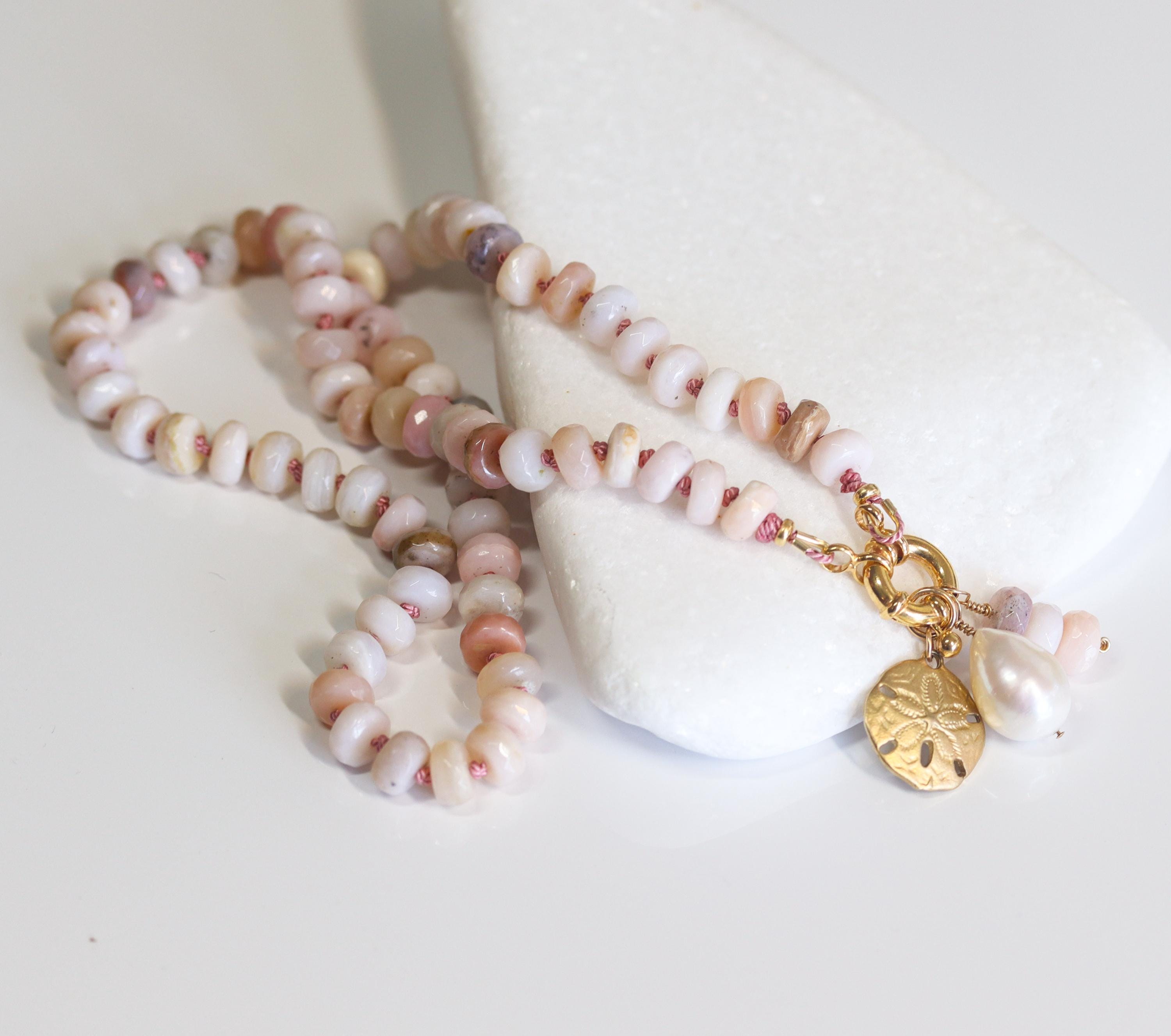 Your necklace includes a coordinating Pink Peruvian Opal charm made from a stacked cluster of opal beads.