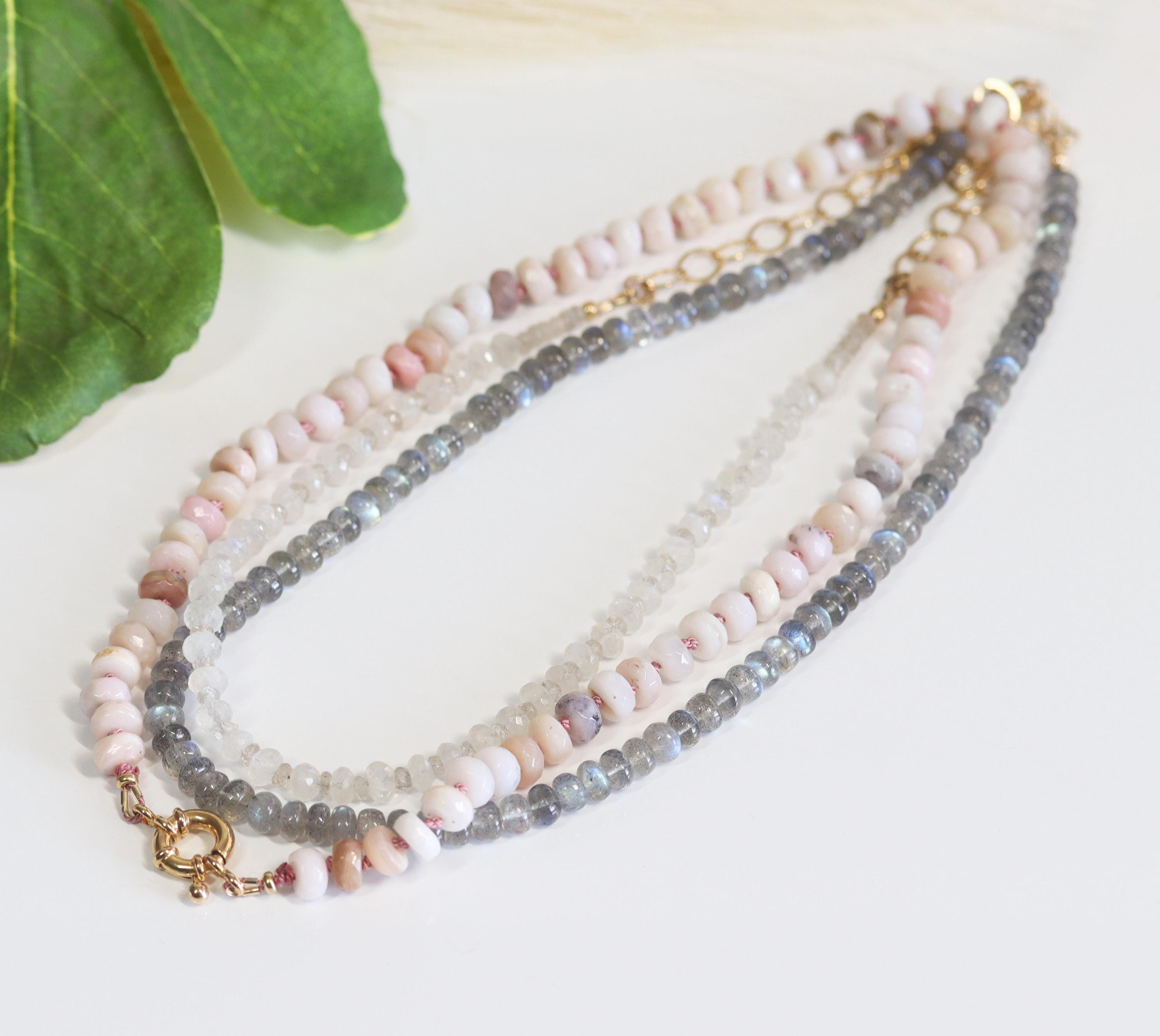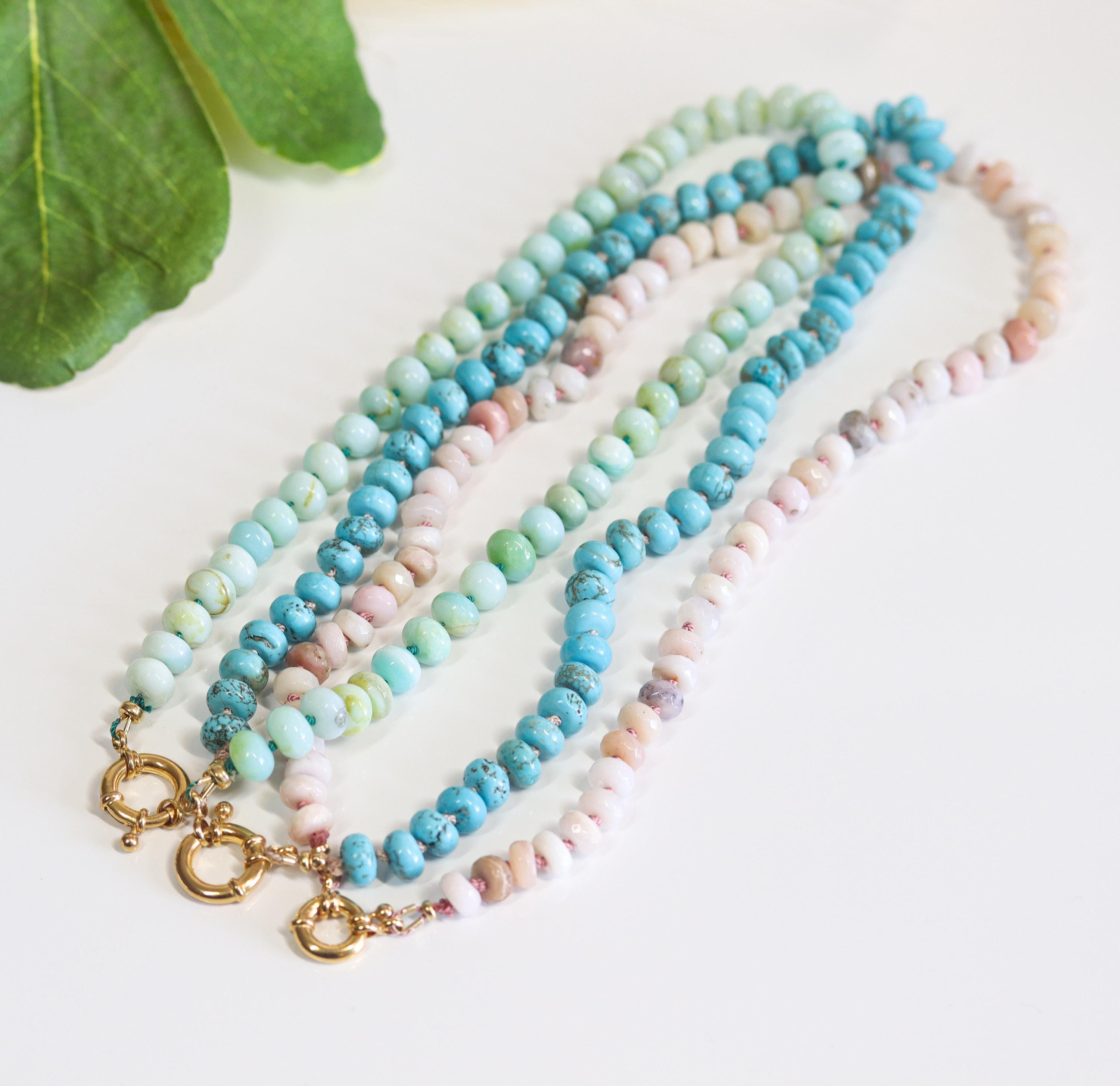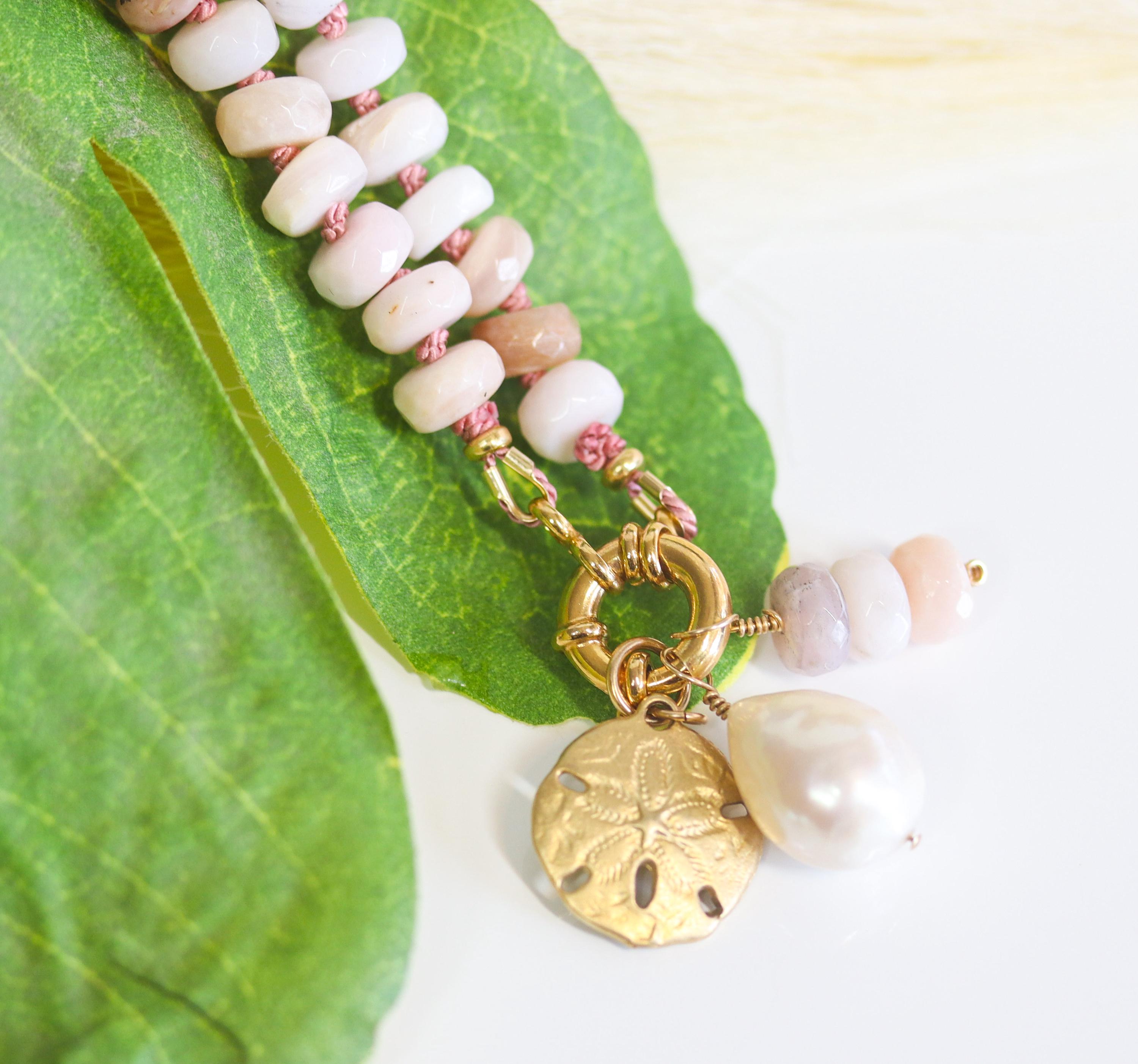 Your necklace includes a coordinating Pink Peruvian Opal charm made from a stacked cluster of opal beads.