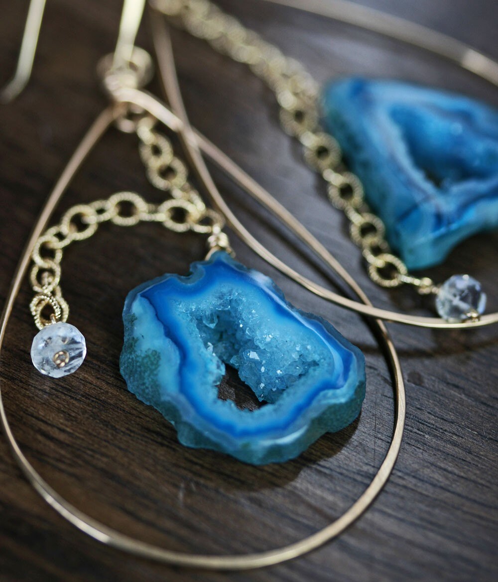 All geodes, druzy, crystals, and raw gems are unique and one of a kind. I do my best to pair them based on color or size. With that being said, when you order a pair of earrings they will NOT be identical. (Think sisters, not twins) This is what I find interesting and beautiful about these earrings. Geode slices are delicate. Take care not to drop them on hard surfaces and they will last for years to come.